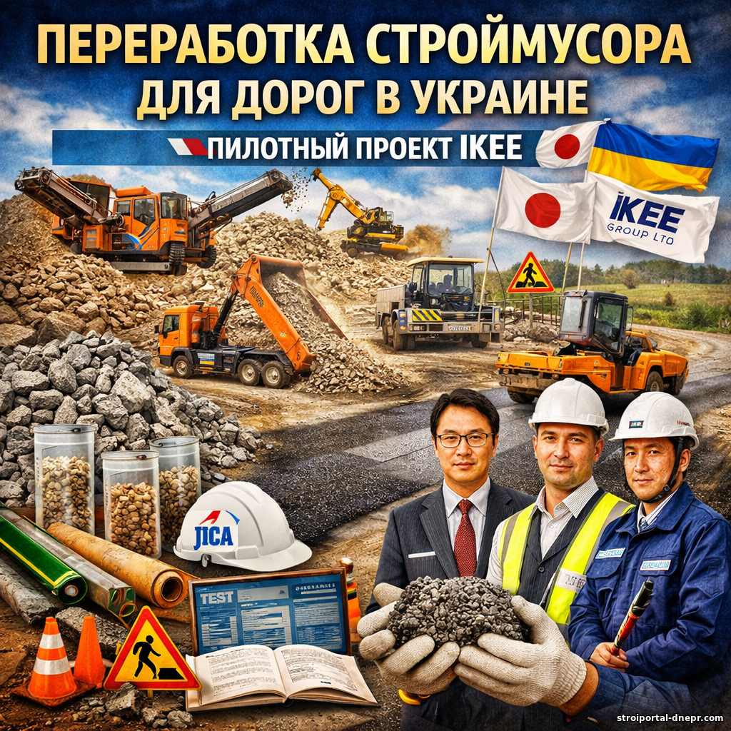 В Украине стартовал пилотный проект японской корпорации IKEE Group Ltd, направленный на использование переработанных отходов сноса и разрушения для производства материалов, применяемых в дорожном строительстве и ремонте. Инициатива была представлена в ходе рабочей встречи в Министерстве экономики, экологии и сельского хозяйства Украины.