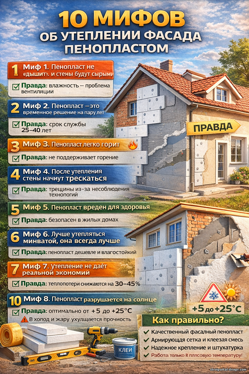 10 мифов об утеплении фасада пенопластом: что правда, а что выдумки