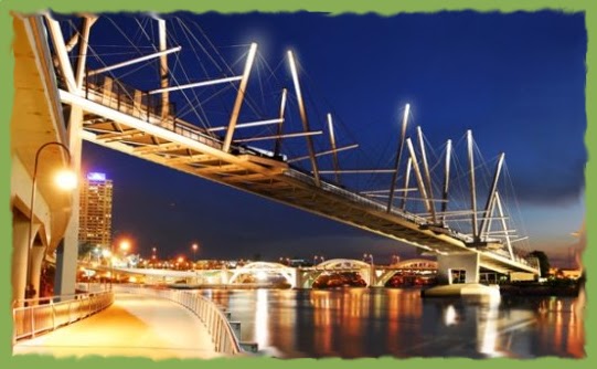 Дизайнеры австралийской архитектурной фирмы "Cox" спроектировали один из самых длинных пешеходных мостов в мире, длинной 470 метров. Светодиодная система освещения работает от 84 встроенных солнечных батарей, производящих ежедневно в среднем 100 КВтч. Благодаря подключению к единой городской электросети, мост может получать энергию, когда это необходимо или отдавать излишки энергии обратно в сеть.