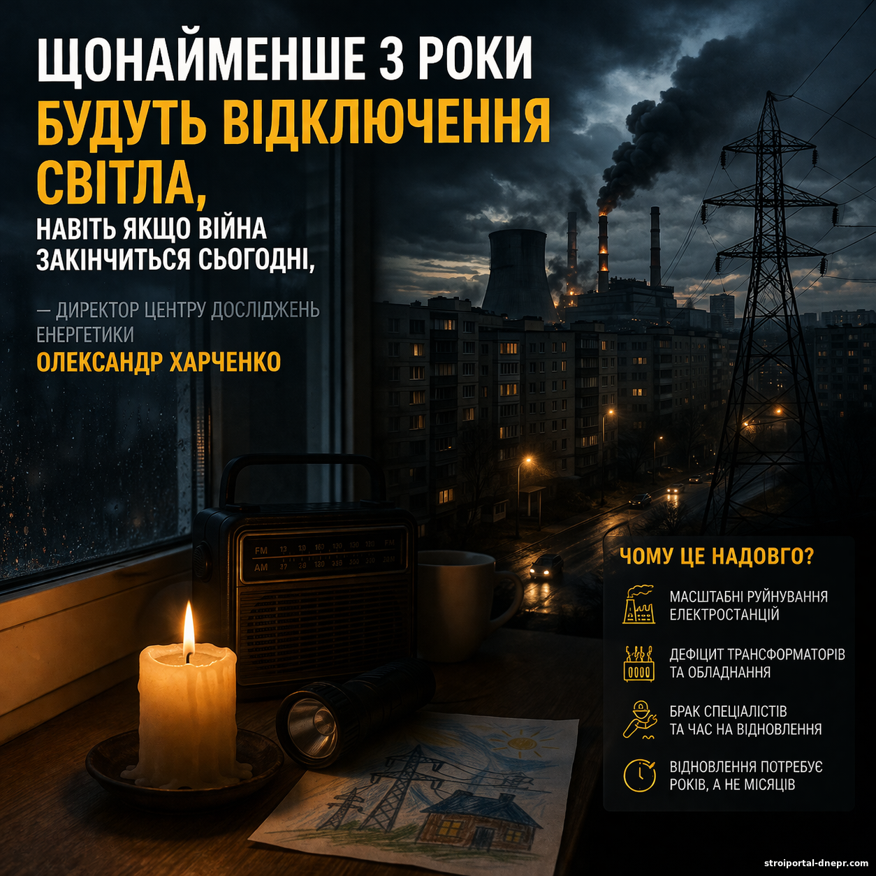 Заява про щонайменше 3 роки відключень світла має під собою реальне підґрунтя. Енергосистема України переживає найскладніший період у своїй історії, і її відновлення потребує часу, ресурсів та системного підходу.